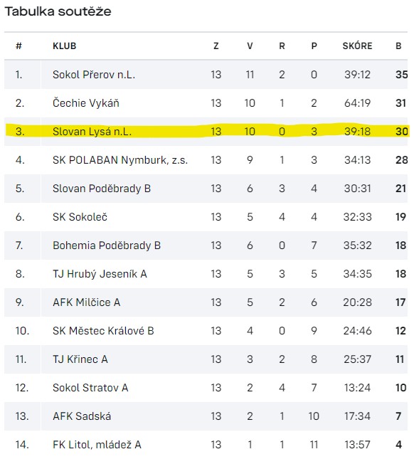 | ZLESÁK Vojtěch | 3 | 2 | 1 | 0 | 0 | 0 | 0 | 208 |