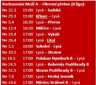 A mužstvo hraje další mistrovské utkání jarní části v neděli 5.4. od 16:30 na domácím hřišti proti Sokolu Přerov nad Labem