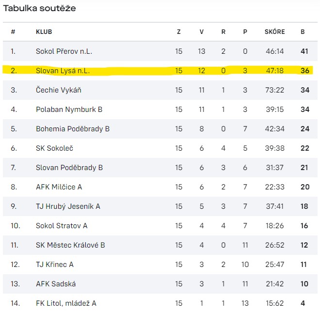 TJ Křinec - Slovan Lysá 0:3 (0:1)